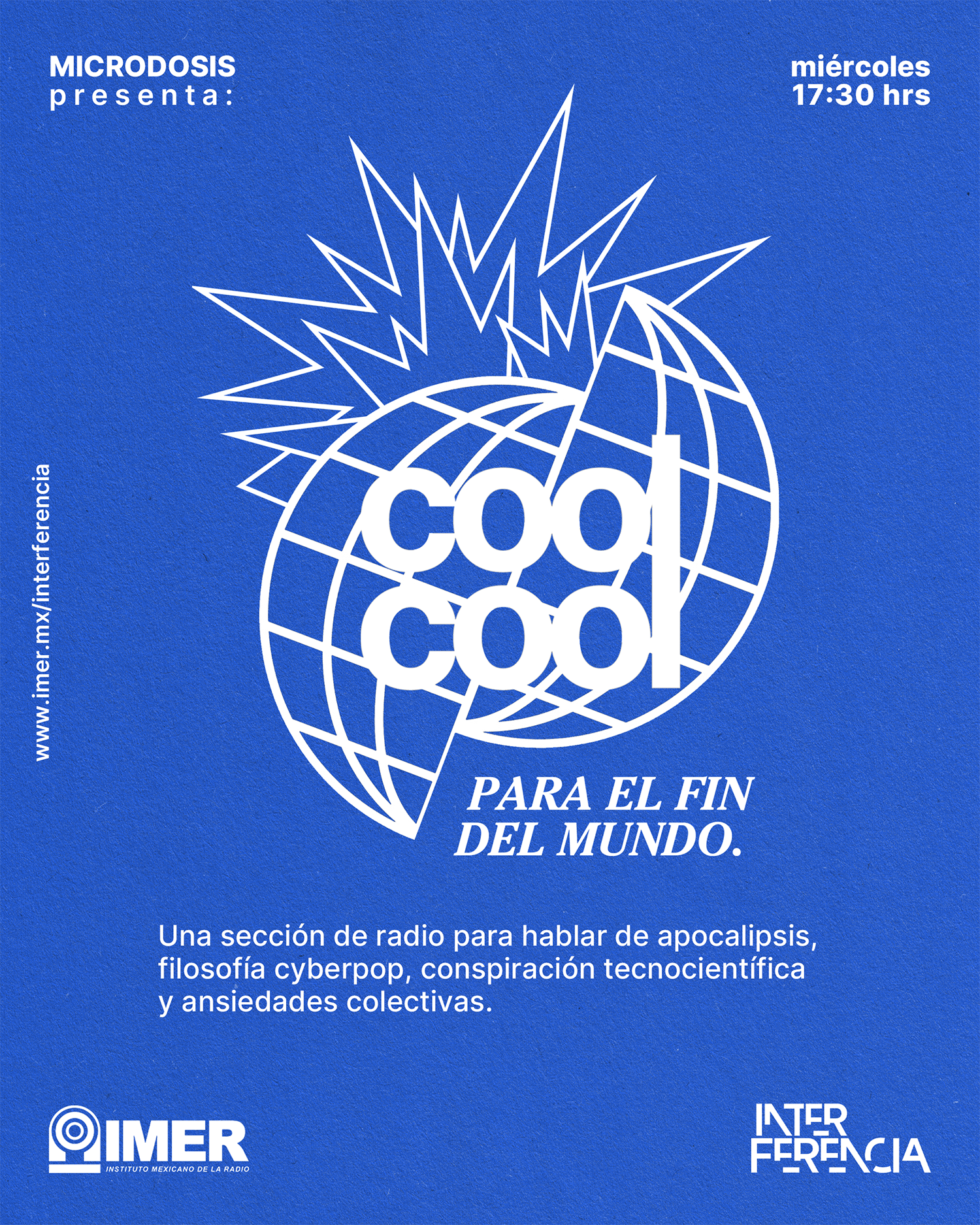 Les invitamos a escuhar la nueva microdosis de INTERFERENCIA del IMER “coolcool: Para el Fin del Mundo”, que estará a cargo de Blues Araiza, integrante del Grupo de Investigación.